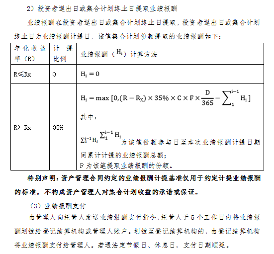 本計劃每筆份額參與后,需滿足18個月持有期(紅利再投份額除外,下同),方可在產(chǎn)品開放期退出。其中,18個月持有期起始日指集合計劃成立日(對認購份額而言,下同)或該筆份額申購申請日(對申購份額而言,下同),18個月持有期到期日指該筆份額的18個月持有期起始日滿18個月的月度對日。該筆份額18個月持有期到期日的次一工作日起投資者可在產(chǎn)品開放期提交該筆份額的退出申請,18個月持有期內(nèi),該筆份額不可辦理退出(按合同約定設置的臨時開放期除外)。