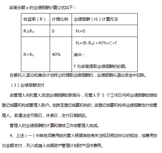 | 投資比例 | (1)投資于固定收益類(lèi)資產(chǎn)及貨幣市場(chǎng)工具的比例不低于資產(chǎn)管理計(jì)劃總資產(chǎn)80%。 (2)本計(jì)劃可以參與證券回購(gòu),但本資產(chǎn)管理計(jì)劃的總資產(chǎn)不得超過(guò)該計(jì)劃凈資產(chǎn)的200%; 本計(jì)劃的建倉(cāng)期為產(chǎn)品成立之日起的6個(gè)月,計(jì)劃管理人應(yīng)當(dāng)在本計(jì)劃建倉(cāng)期結(jié)束后使本計(jì)劃的投資組合符合法律、行政法規(guī)、中國(guó)證監(jiān)會(huì)規(guī)定和本合同約定的投向和比例。 |